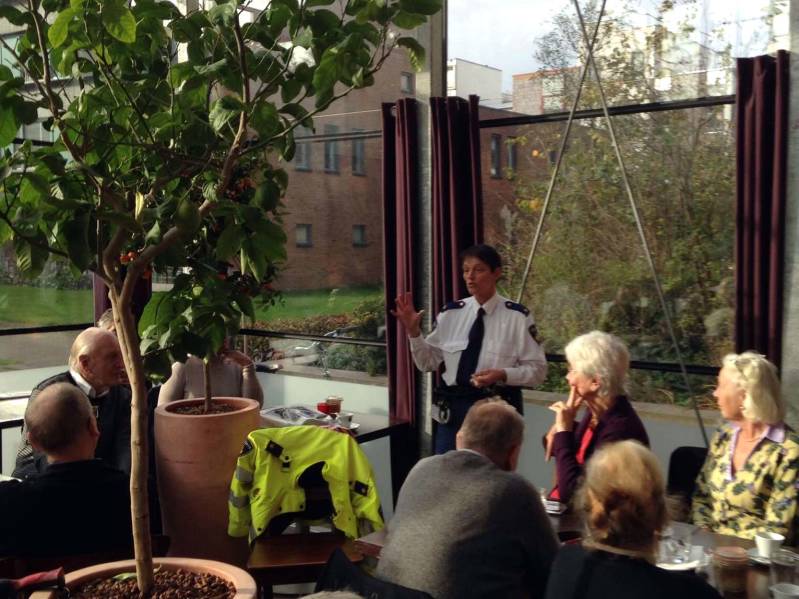 In november kreeg soosbezoeker Hans van der Wilk veel respons op zijn praatje over o.a. belangenverenigingen voor patiënten in de gezondheidszorg. Het praten over de onvolkomenheden in de zorg maakte heel wat los bij de aanwezigen. Wijkagente Désirée Geritz was opnieuw uitgenodigd en onder grote belangstelling praatte zij ons bij over de (on)veiligheid op ons eiland, wat wij daar zelf aan kunnen doen en over de gevolgen van de reorganisatie bij het politiekorps.