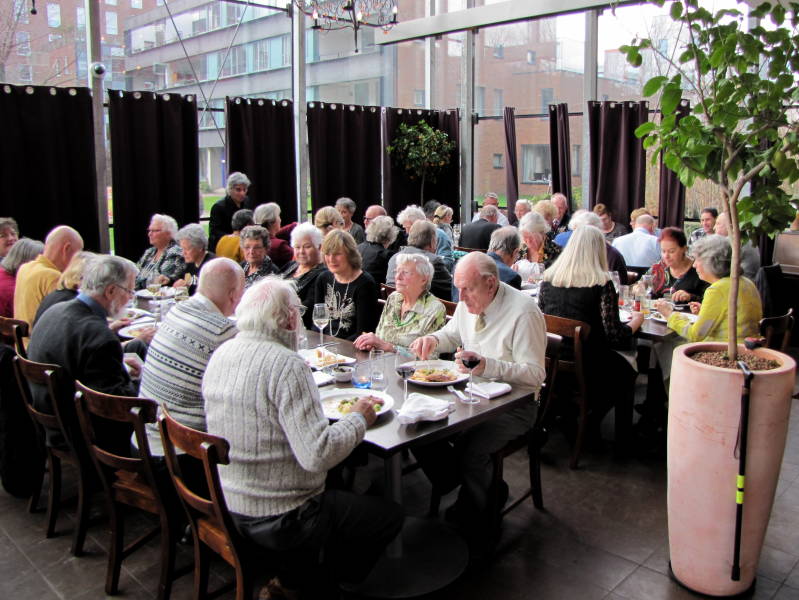 Sinterklaas werd met veel mensen gezellig gevierd met wat lekkers bij de koffie en voor de liefhebber warme chocolademelk met slagroom! Oude tijden herleefden J. Niels van Santen en Jette Bolle van Stadsdeel Oost waren een week later gastsprekers. Het gespreksonderwerp, over veranderingen en bezuinigingen in de zorg, maakte veel emoties los. Het eerste jaar werd in stijl afgesloten. December begon met een bezoek aan de Stopera. Met liefst 20 personen genoten we eerst van een prachtig (gratis) lunchconcert, waarna er een schitterende rondleiding volgde.