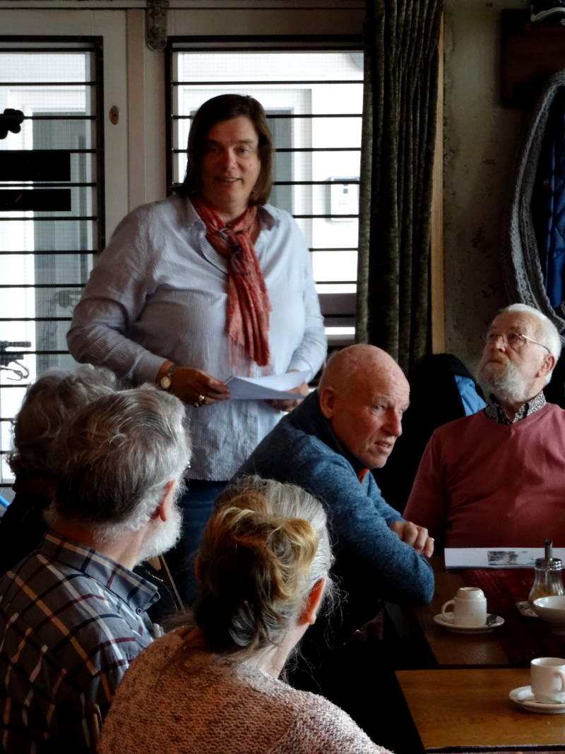 In februari was oud-marineman Wil Jansen onze gastspreker. Hij vertelde, hoe hij als broekie van 15 jaar bij de marine begon en o.a. op de bekende Karel Doorman had gevaren. Frappant was, dat we tijdens zijn praatje net de nieuwe Karel Doorman zagen vertrekken van de Passengers Terminal. Wil vertelde ook, hoe hij begonnen was met een soos voor veteranen en de jaarlijkse Amsterdamse veteranendag.
