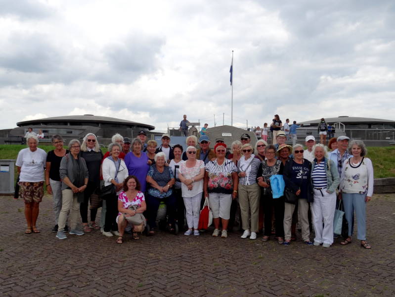 De vaartocht van de maand was echter onze tocht naar Pampus. Met 33 deelnemers was het dek van de veerboot grotendeels door ons gevuld. Het werd een schitterende dag met een meer dan interessante rondleiding over het eiland en door het fort en op de terugweg nog een tussenstop bij het Muiderslot. Het was opnieuw een geweldig uitje en het enthousiasme was groot!