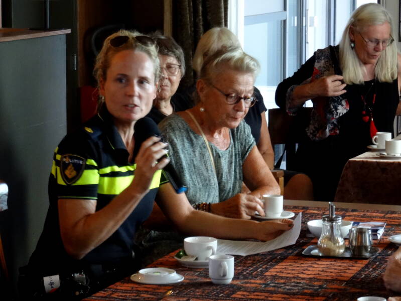 In september was er veel belangstelling voor gastspreker wijkagent Mariska Ploeger. Zij beantwoordde de vele vragen, die vooraf door onze bezoekers waren ingediend. Vooral het onderwerp handhaving kwam daarbij aan bod, waarbij duidelijk werd, dat dit nog niet zo eenvoudig is als het lijkt. Daarbij speelt o.a. ook het gebrek aan genoeg “blauw” op straat een belangrijke rol.